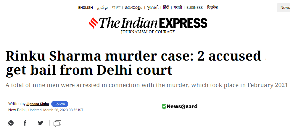 A Delhi court recently granted bail in murder case to Tajuddin, who was arrested in connection with the murder of Rinku Sharma in Delhi’s Mangolpuri area in 2021. Rinku Sharma, a 25-year-old hospital technician, was allegedly stabbed to death by a group of men on February 10, 2021.