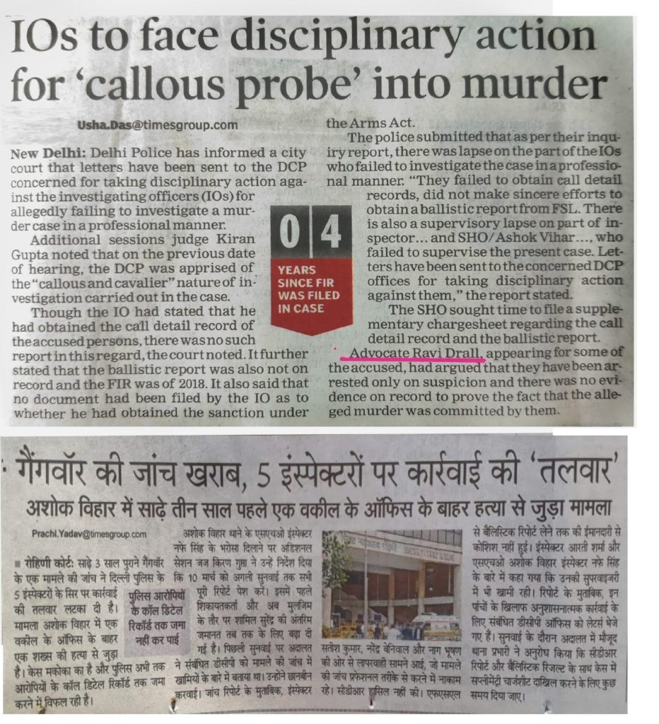 Disciplinary Action against 5 inspectors of Delhi Police- Advocate Ravi Drall